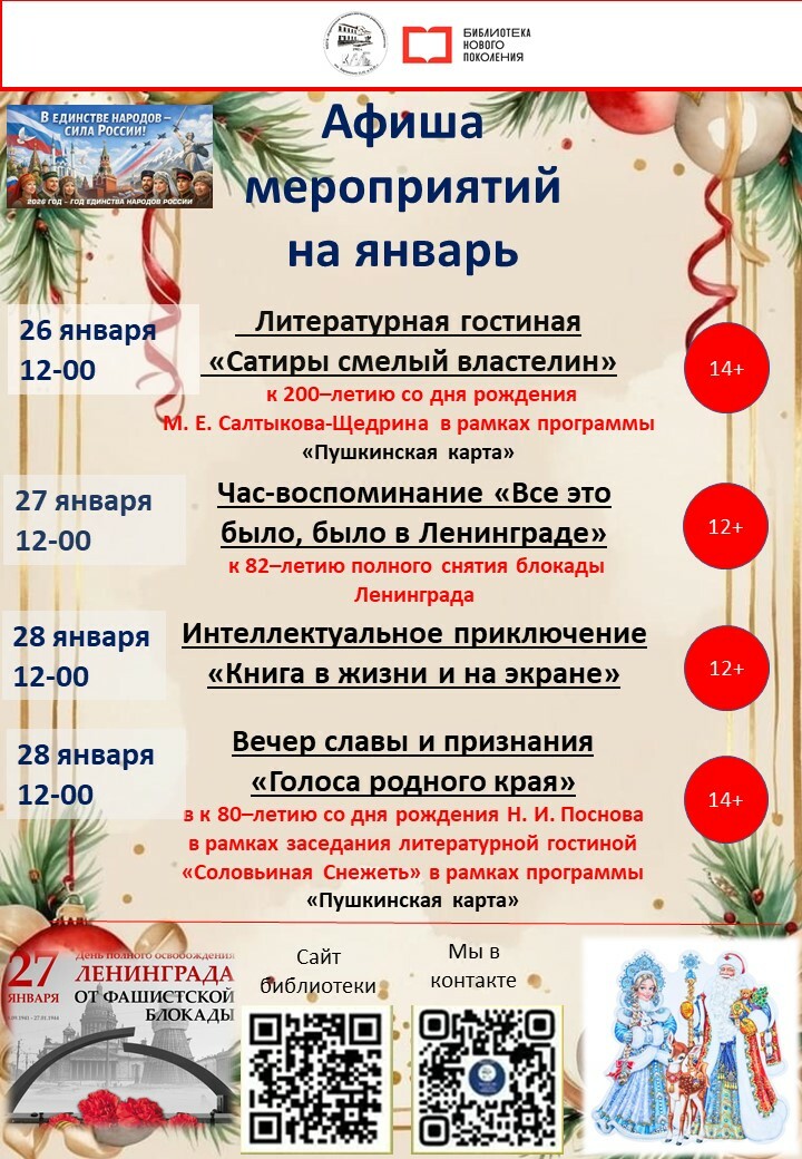 МБУК "Карачевская межпоселенческая районная библиотека им. Баранских Н.Н. и Н.В." приглашает военнослужащих, мобилизованных граждан и членов их семей посетить мероприятия библиотеки. Все мероприятия для вас являются бесплатными.