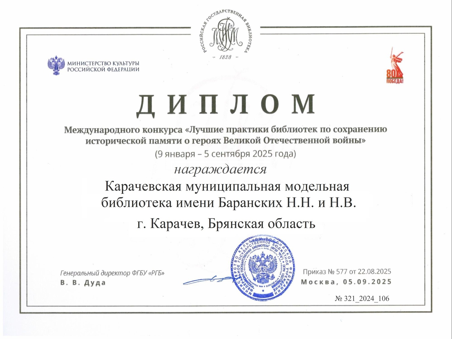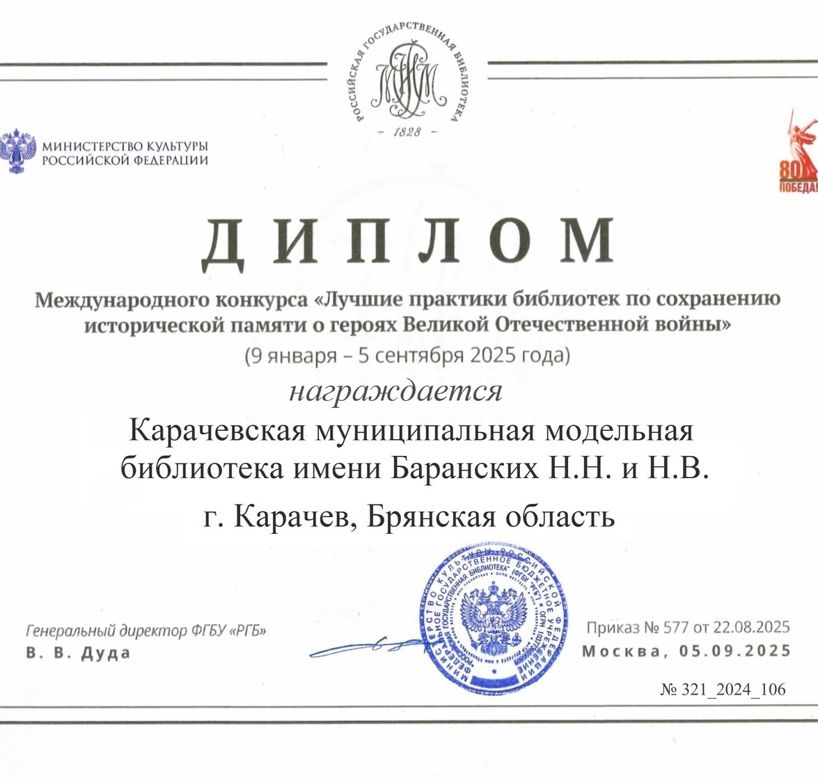 МБУК "Карачевская межпоселенческая районная библиотека им. Баранских Н.Н. и Н.В."