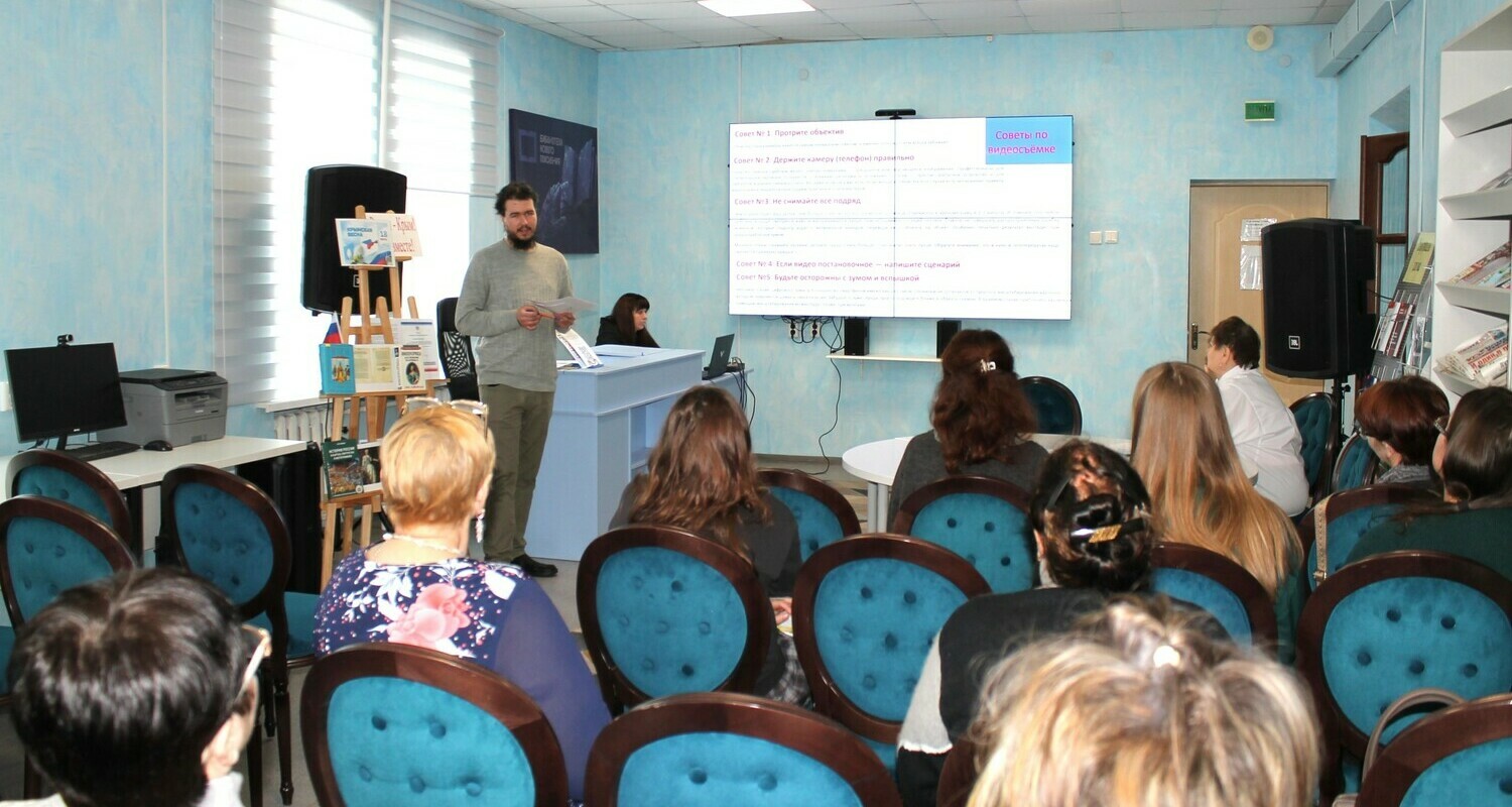 Современные технологии в библиотечной деятельности стали темой выступления методиста А. В. Гарикова. В рамках блока «Правила видеосъемки. Основы создания видеороликов для библиотеки» Александр Владимирович рассказал о базовых принципах съемки, монтажа и публикации видеоконтента. Участники узнали, как создавать привлекательные ролики для соцсетей, соблюдая авторские права и технические стандарты, – это поможет библиотекам расширить аудиторию и сделать свои мероприятия более заметными в цифровом пространстве.