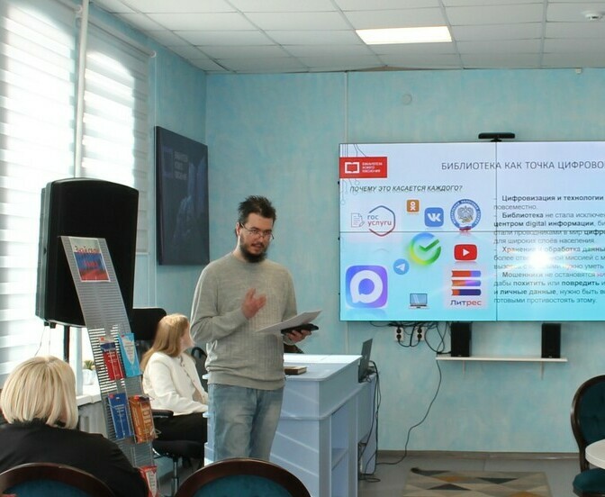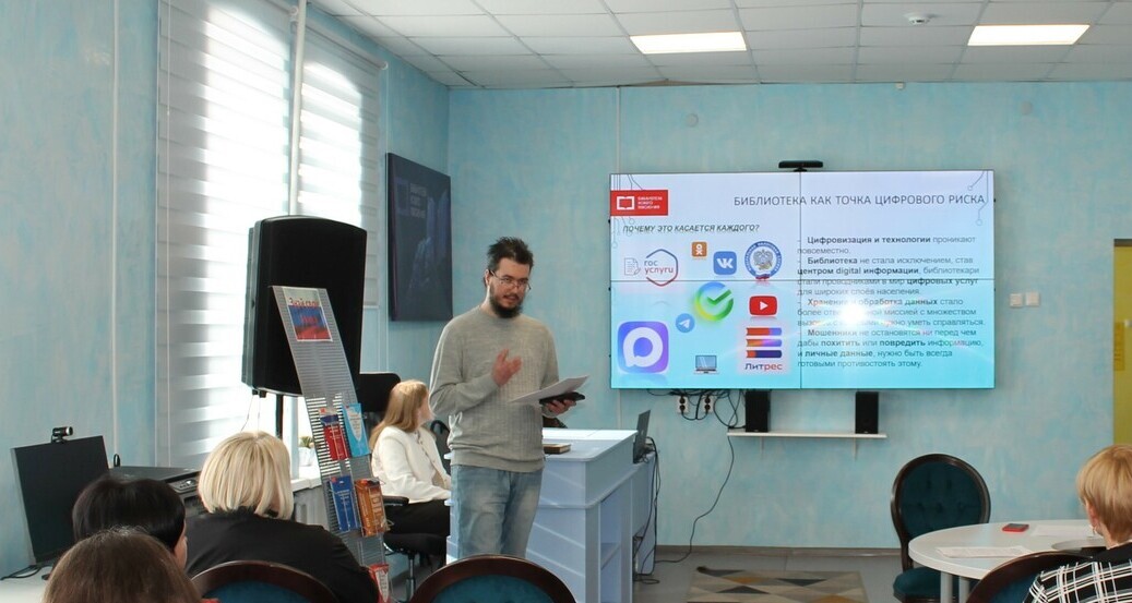 А. В. Гавриков, методист осветил важную и насущную на сегодняшний день тему информационной безопасности в библиотеке. Его доклад «Информационная гигиена в библиотеке: защита фонда, техники и сотрудников» помог сотрудникам библиотеки улучшить навыки обеспечения информационной безопасности.