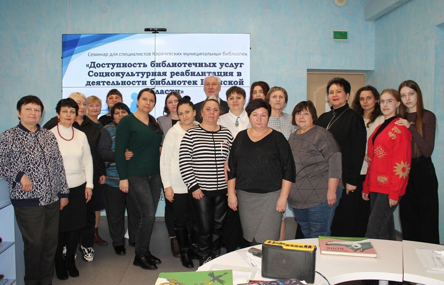 В завершение рабочей недели коллеги из Брянска провели обучающий семинар «Доступность библиотечных услуг. Социокультурная реабилитация в деятельности библиотек Брянской области» для специалистов Карачевской модельной библиотеки имени Баранских Н.Н. и Н.В. и заведующих сельскими библиотеками-филиалами.
