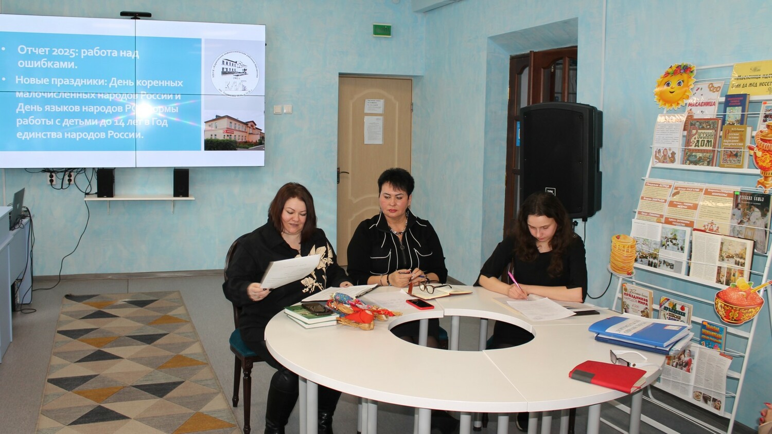 И. Н. Курулева, зав. детским отделом вела разговор с коллегами о новых праздниках — Дне коренных малочисленных народов России и Дне языков народов РФ. Также, Ирина Николаевна поделилась интересными формами работы с детьми до 14 лет в Год единства народов России.