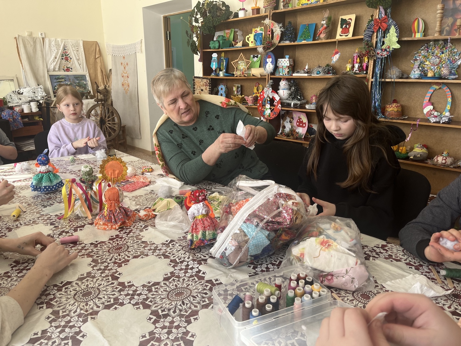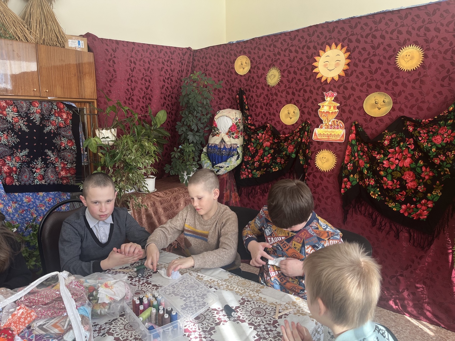 Приглашенная на мероприятие местный мастер Мадаминова Екатерина провела с ребятами мастер-класс по изготовлению куколок своими руками, символизирующих Масленицу.