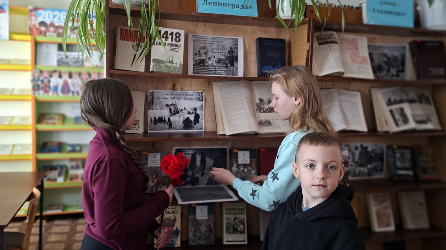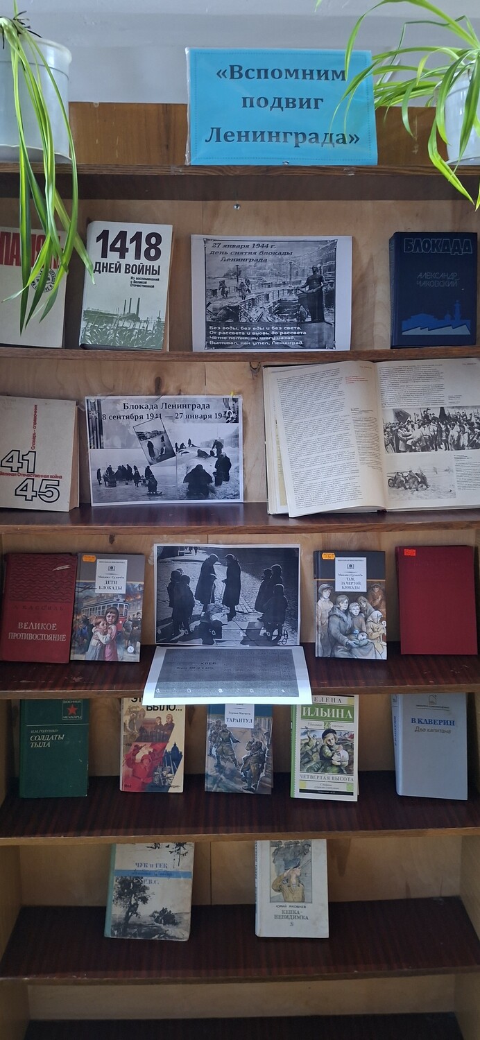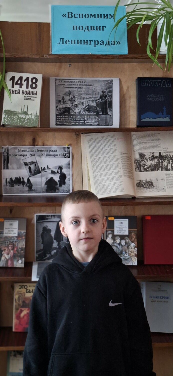Библиотекарь рассказала ребятам о героизме и стойкости жителей Ленинграда, тяжёлой жизни в условиях блокады, о голоде и холоде, блокадном хлебе рабочим выдавали 250 граммов, а детям 125 граммов это была дневная норма хлеба, о «дороге жизни» по льду Ладожского озера была проложена дорога, названная Ленинградцами дорогой жизни. По ней под огнём противника перевозили хлеб в город, а обратно – эвакуировали раненых, детей и стариков. С особым чувством ребята прониклись к судьбе маленькой девочки Тани Савичевой и её семье, она написала в своём дневнике.