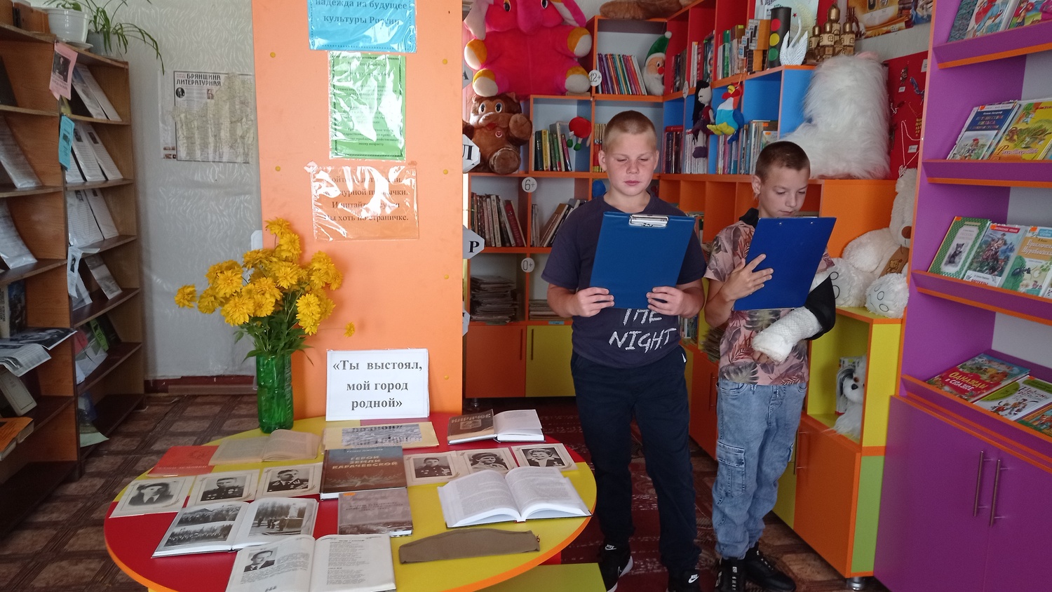 На мероприятии ребята узнали о том, какой ценою был освобождён наш город, прочли стихотворения поэтов-земляков: Зои Ионочкиной «Карачев», «Что для нас Россия значит?» Сергея Соколова «Мой город», Александра Мехедова «Древний город Карачев».Библиотекарь также провела обзор у книжной выставки «Ты выстоял, мой город родной», на которой экспонировались краеведческие книги, фото военной хроники освобождения г. Карачева.