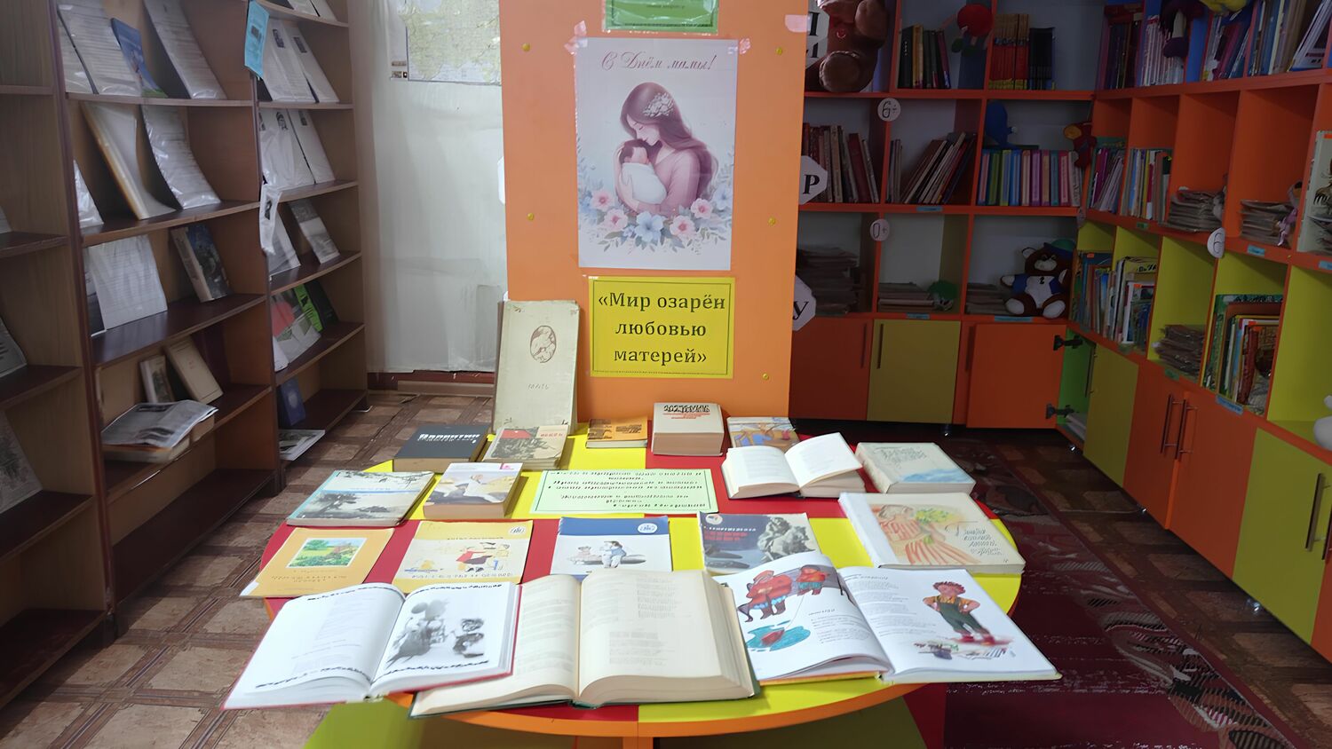 Библиотекарем была подготовлена и оформлена книжная выставка «Мир озарён любовью матерей». Здесь собраны книги, посвященные любви, заботе, теплу и мудрости матерей.