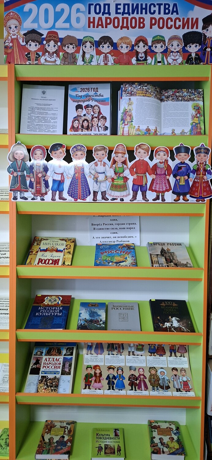 В рамках празднования Года единства народов России, объявленного Президентом России В. В. Путиным, в Лужецкой сельской библиотеке открыта книжно-иллюстративная выставка «2026 год – Год единства народов России».