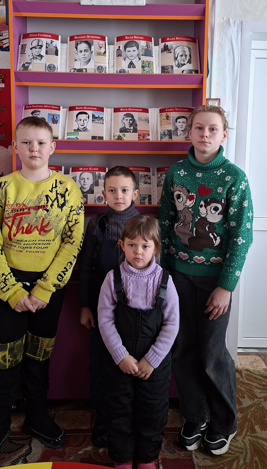 Библиотекарь рассказала ребятам о мальчишках и девчонках, за подвиги, которые, совершённые в годы Великой Отечественной войны, были удостоены самой высокой награды Родины — звания Героя Советского Союза.