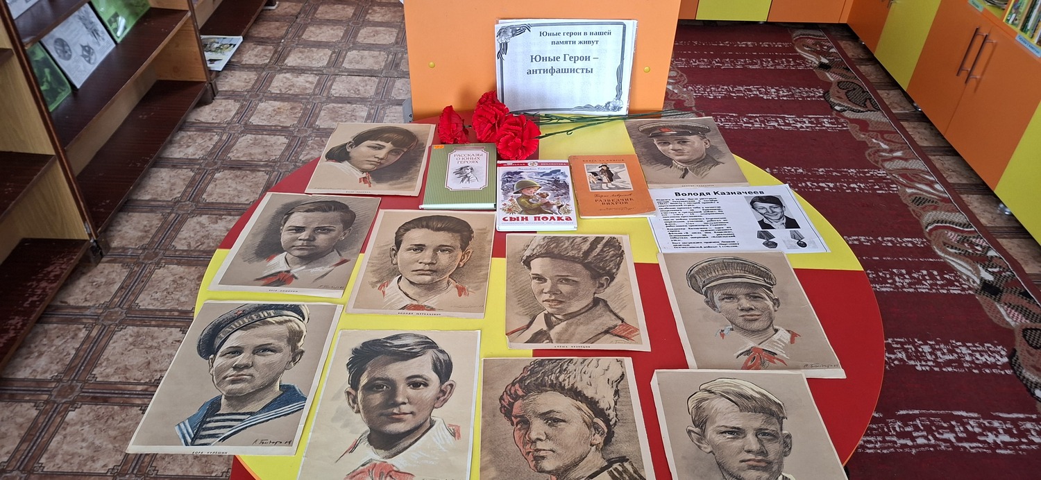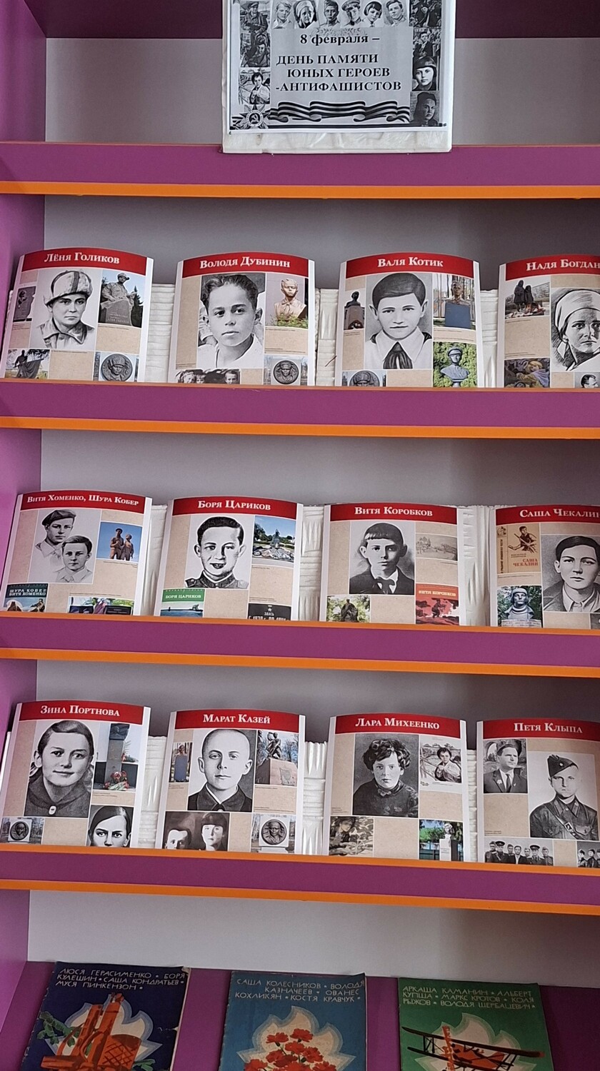 О юных героях Отечества было написано много книг. С некоторыми из них дети познакомились на книжной выставке с произведениями Сергея Алексеева, серией книг о пионерах-героях, сборниками о Великой Отечественной войне и другими материалами.
