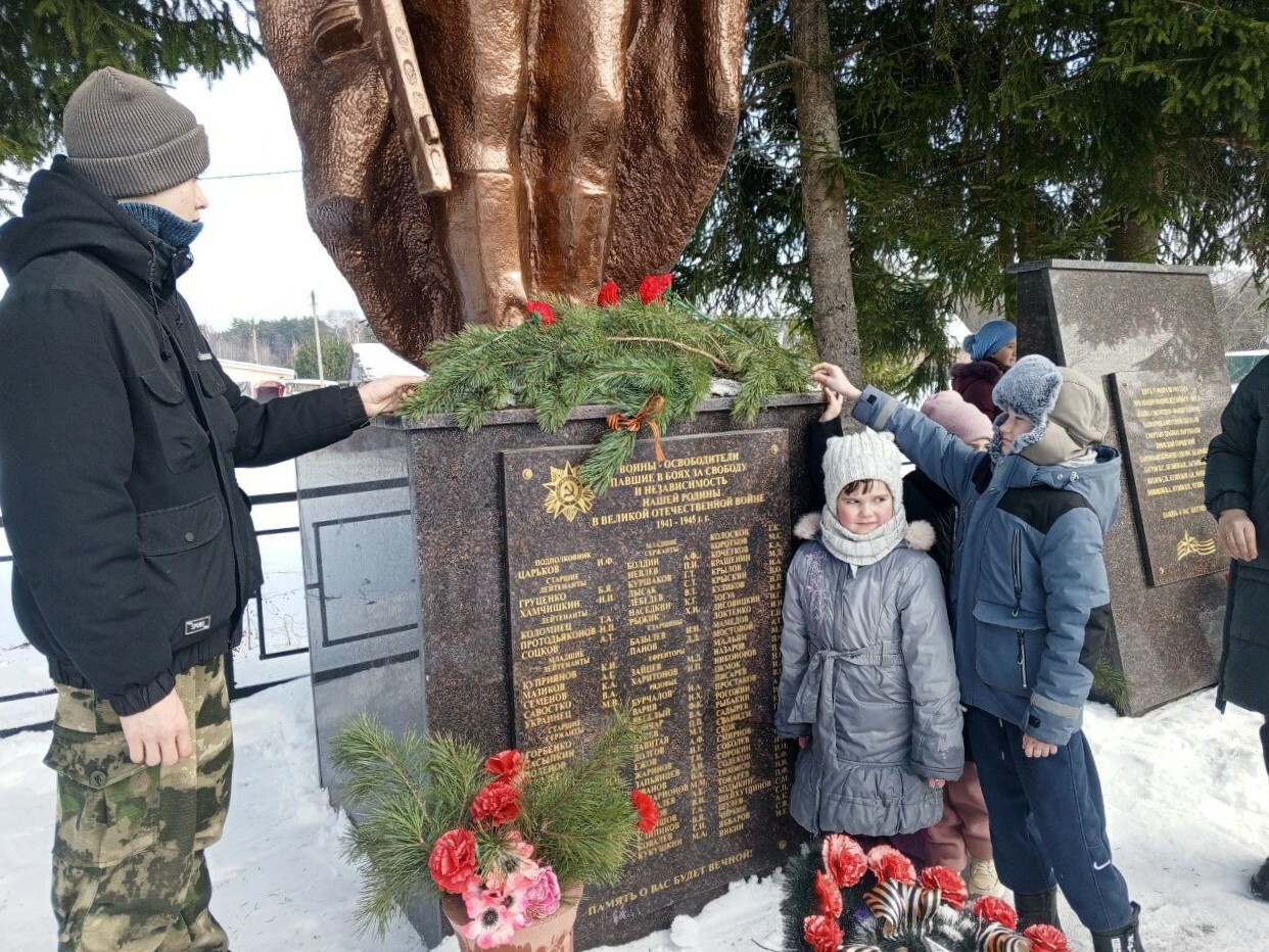 Участники акции посетили братскую могилу воинов-освободителей в д. Мылинка, поговорили о преемственности поколений, о солдатах, боровшихся с нацизмом в годы Великой Отечественной войны и борющихся сегодня в ходе специальной военной операции, об их героизме, самопожертвовании и любви к Родине, о важности сохранения исторической памяти. Волонтёр Четверикова К. В. передала слова благодарности от военнослужащих за переданные подарки к празднику. Минутой молчания почтили память всех погибших за освобождение Родины, возложили цветы.