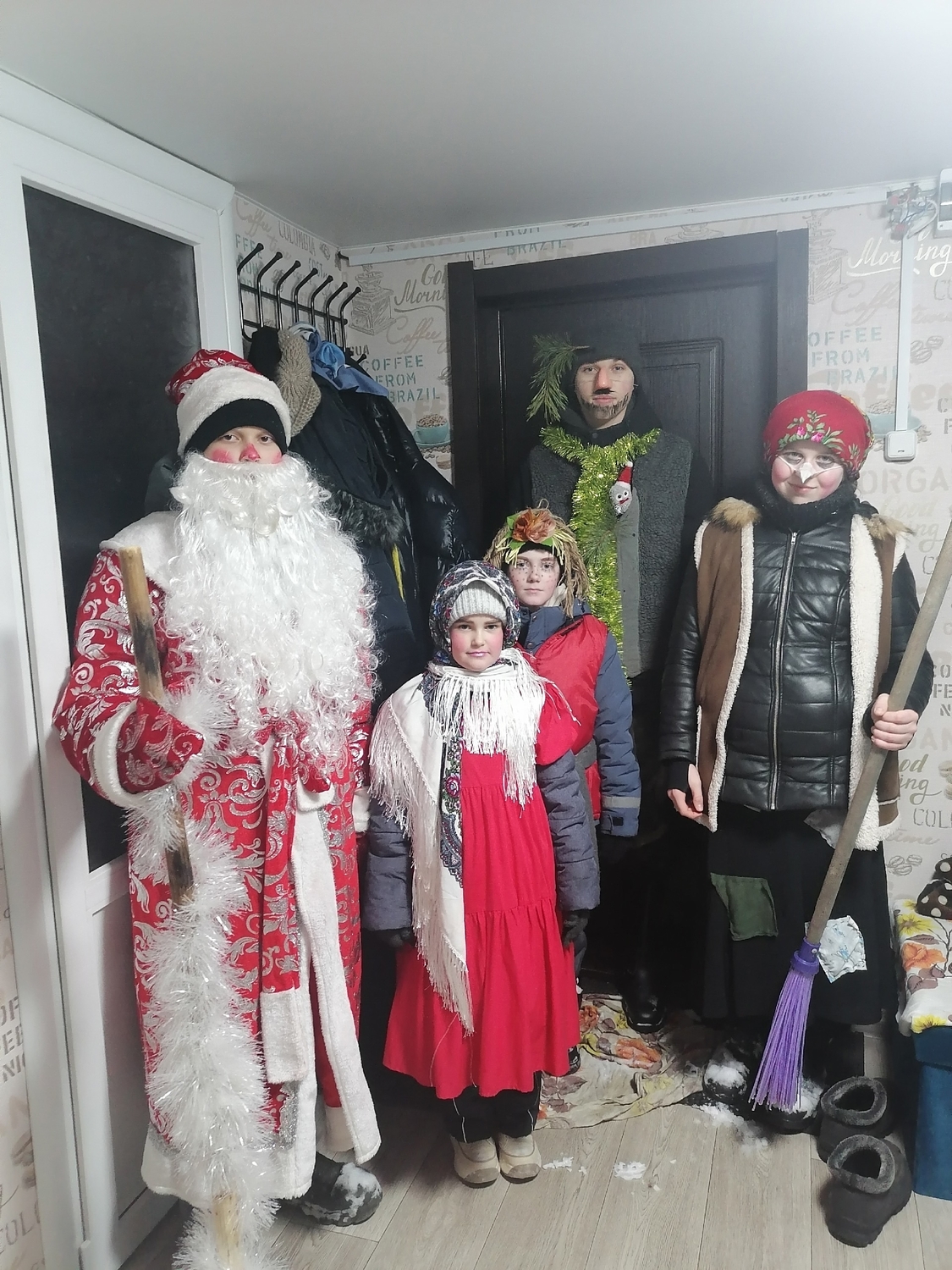 В Рождественский сочельник библиотекарь собрала ребят на фольклорные посиделки, на которых вспомнили историю и традиции праздника. А после этого, с колядками и поздравлениями с Рождеством Христовым заглянули в гости к односельчанам. Ряженые славили хозяев, желали им добра, благополучия, хорошего урожая, здоровья, счастья и радости. Хозяева встречали гостей добродушно и щедро одаривали сладостями. Все получили положительные эмоции и прекрасное настроение.