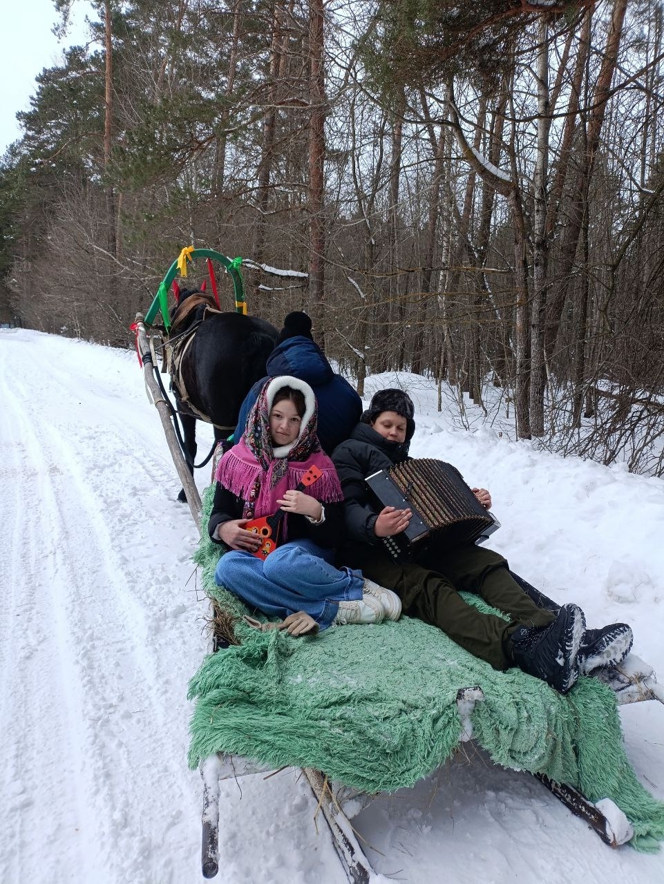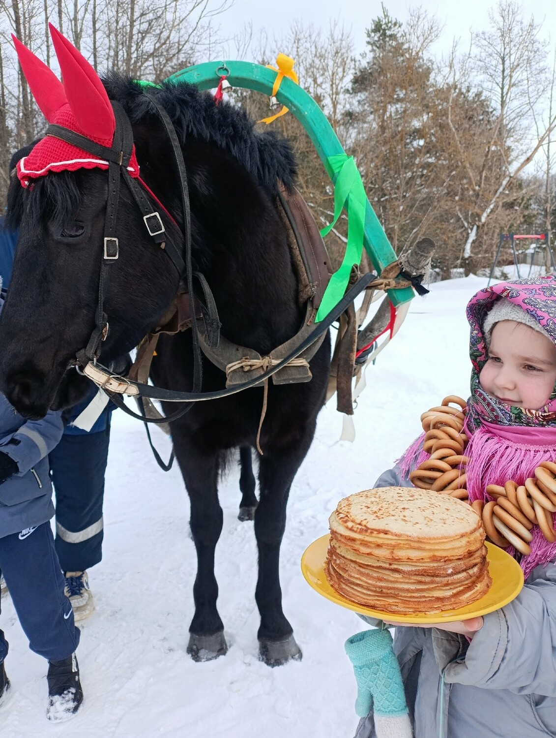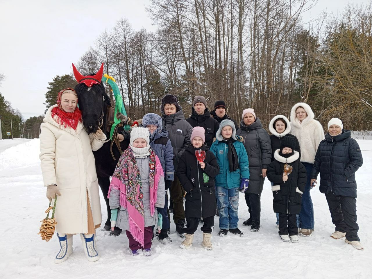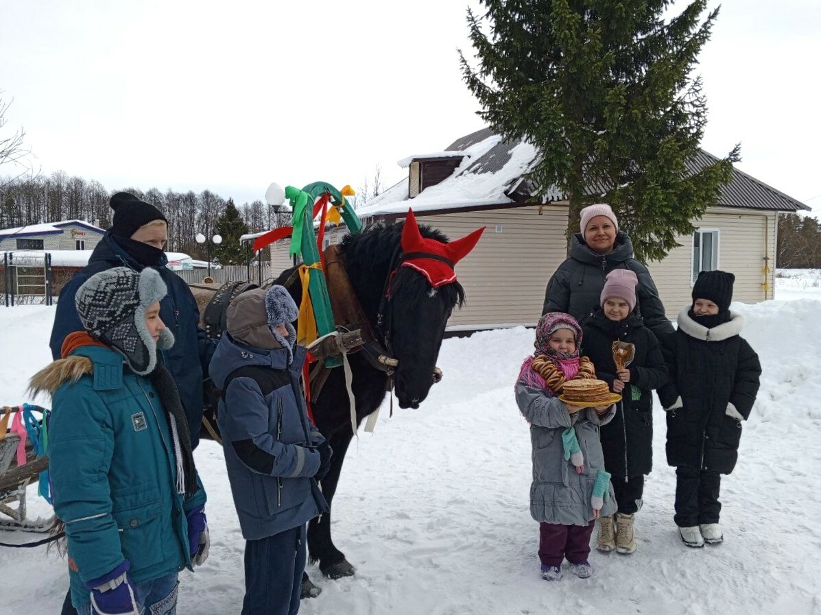 Продолжилось мероприятие весёлыми катаниями по деревенской улице на санях с лошадкой от конного подворья «Мыльное Ранчо».