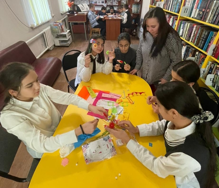 Библиотекарь рассказала об истории возникновения праздника, традициях и обычаях в каждой семье. Так же провела мастер-класс по изготовлению поздравительной открытки.Библиотекарь помогла ребятам из цветной бумаги и фетра создать уникальную поделку.