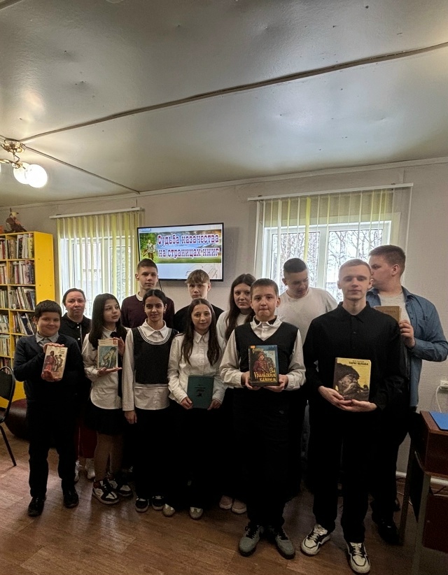 Казачество – это часть общей культуры – это наше наследие, которое нужно сохранить и познакомить с ним наших детей. В филиале № 12 «Согласинская сельская библиотека» для учащихся МБОУ Дружбинская СОШ прошли громкие чтения " Судьба казачества на страницах книг" в рамках программы " Пушкинская карта".