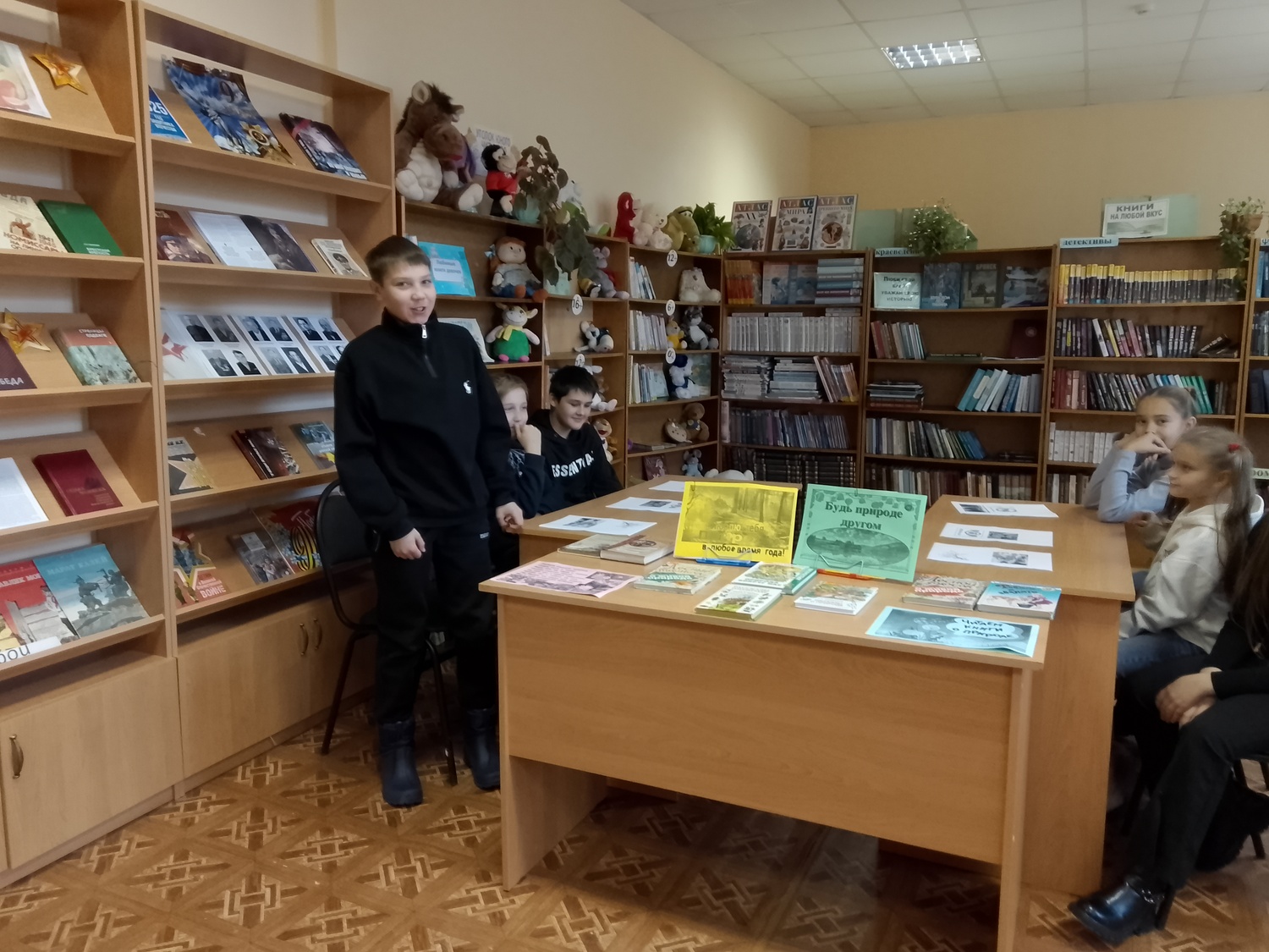 Природа занимает одно из главных мест в русской поэзии, многие поэты воспевали ее красоту. В ходе мероприятия ребята рассказывали стихи о природе : А.С. Пушкина, С.А. Есенина, Ф.И. Тютчева, А.А. Фета, М.Ю. Лермонтова. Познакомились с обзором книг К. Паустовского, Б. Житкова, В. Бианки, М. Пришвина, Г. Скребицкого. С рассказами этих авторов знакомо не одно поколение, они учат любить и беречь природу, увидеть необычное, быть наблюдательными.
