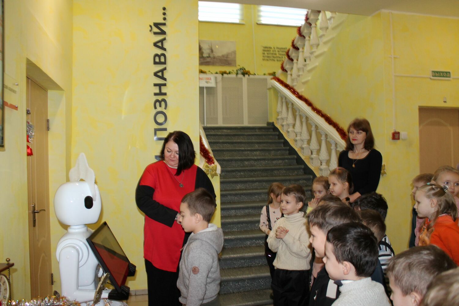 В детском читальном зале малыши познакомились с роботом Дашей, которая для них спела весёлые песенки, прочитала новогодние стишки, а также, рассказала о библиотеке.