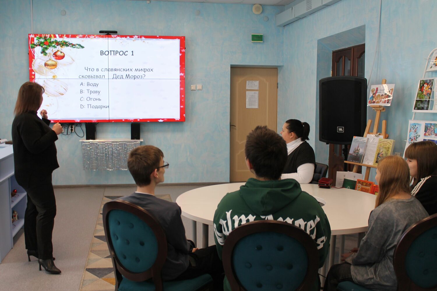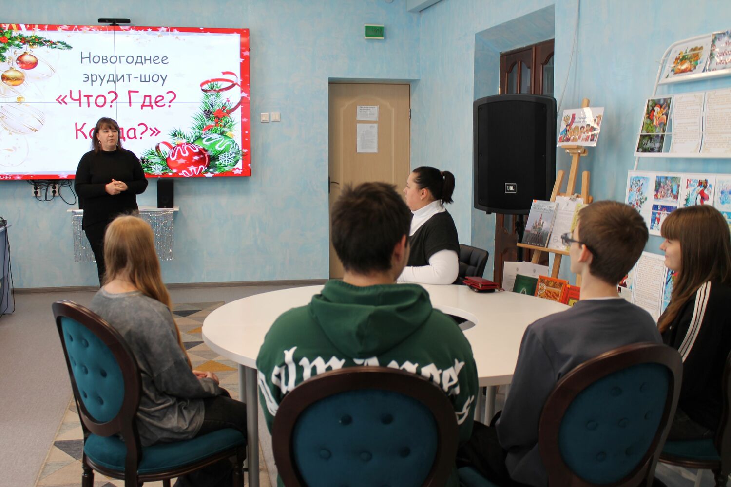 В один из волшебных новогодних дней читальный зал Карачевской муниципальной модельной библиотеки наполнился атмосферой азарта и интеллектуального соперничества. Учащиеся 8-го класса школы №4 им. С. П. Лоскутова с удовольствием приняли участие в праздничном эрудит-шоу «Что? Где? Когда?».