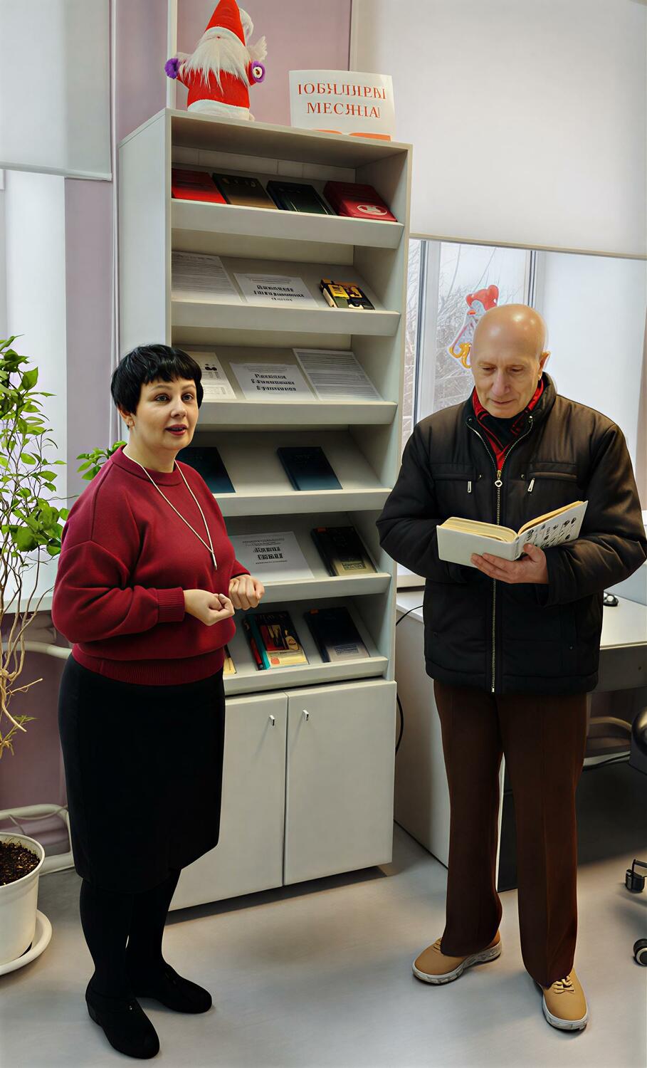 Библиотекарь рассказала читателям о произведениях, представленных на выставке.