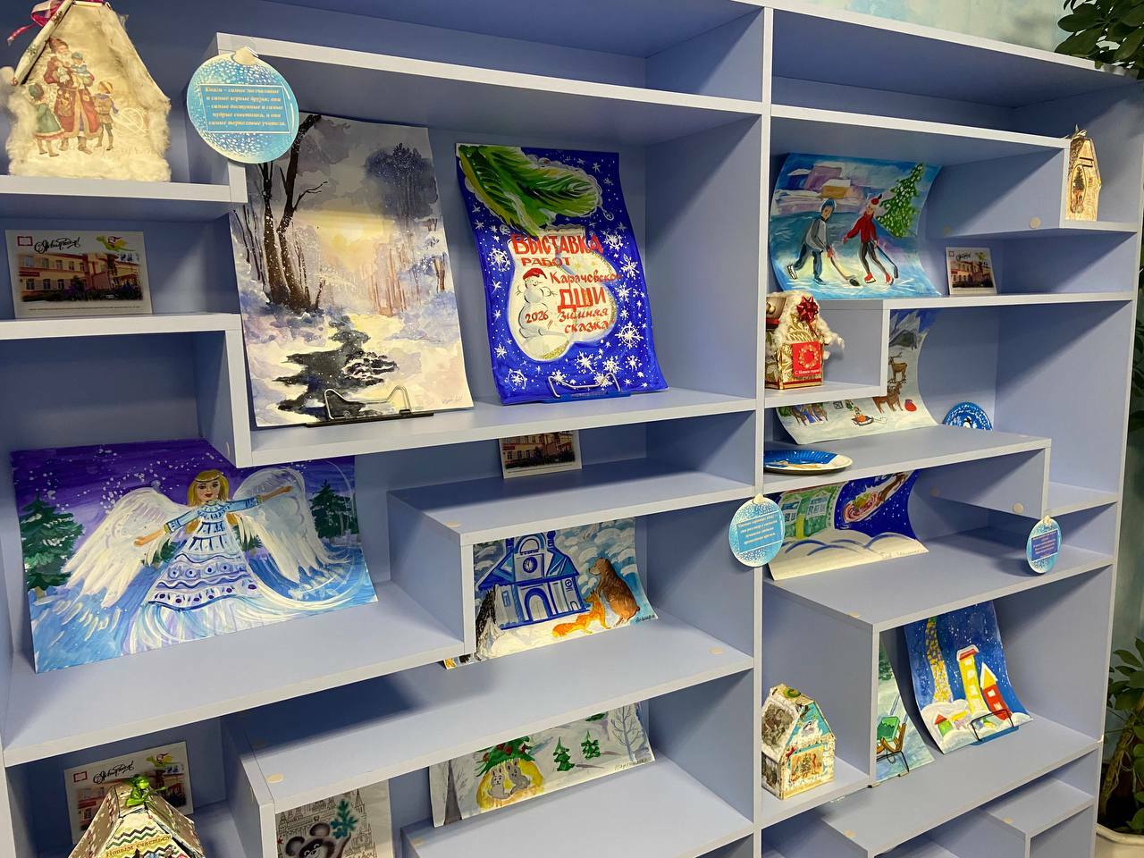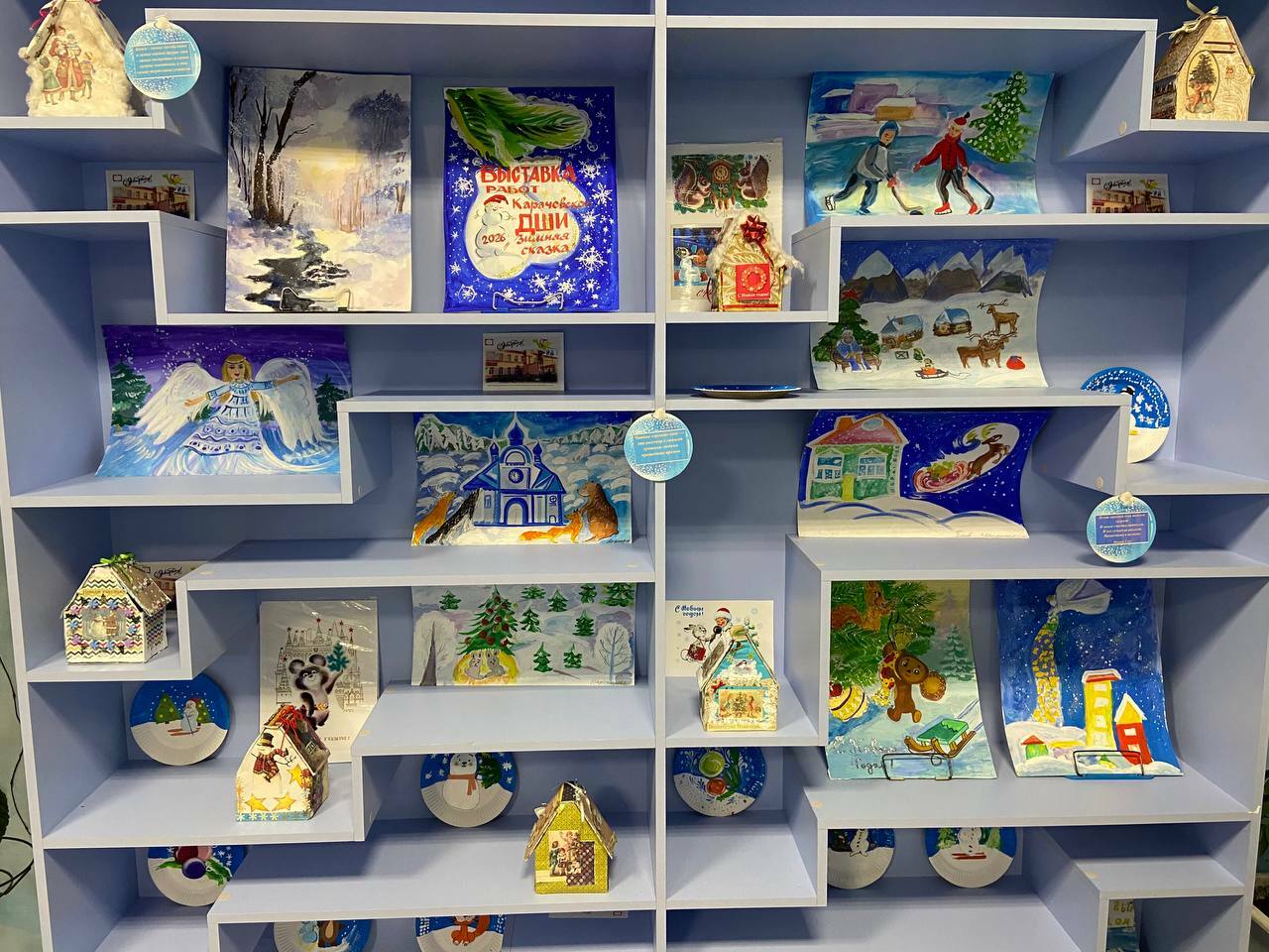 Вас ждут очаровательные рисунки и миниатюрные домики, расписанные вручную и украшенные сверкающими деталями. Дополняют экспозицию изящные расписные тарелки. Все эти чудесные работы, предвкушающие праздник, станут прекрасным подарком для посетителей библиотеки и помогут создать неповторимую атмосферу новогоднего волшебства.