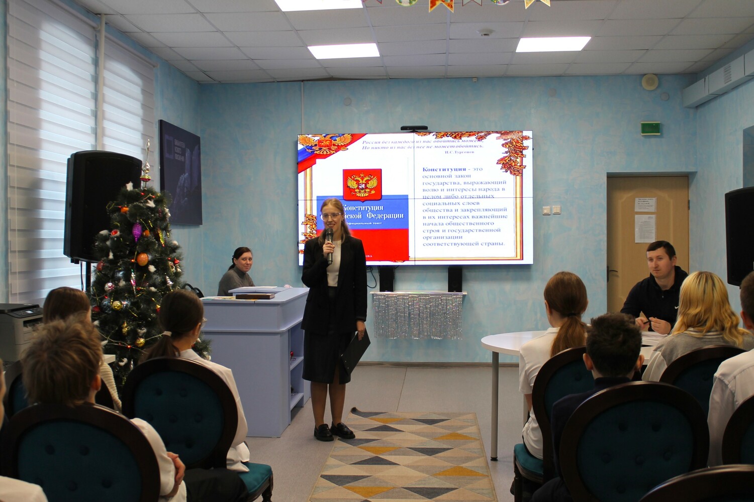 В ходе мероприятия, посвященного Конституции Российской Федерации, учащиеся продемонстрировали свои знания и активное участие. После исполнения гимна России и просмотра информационного видеоролика, школьники с энтузиазмом включились в игру «Конституция – основной закон государства», организованную библиотекарями. Разделившись на команды, они успешно справились с серией сложных вопросов, показав высокий уровень осведомленности в области конституционного права.